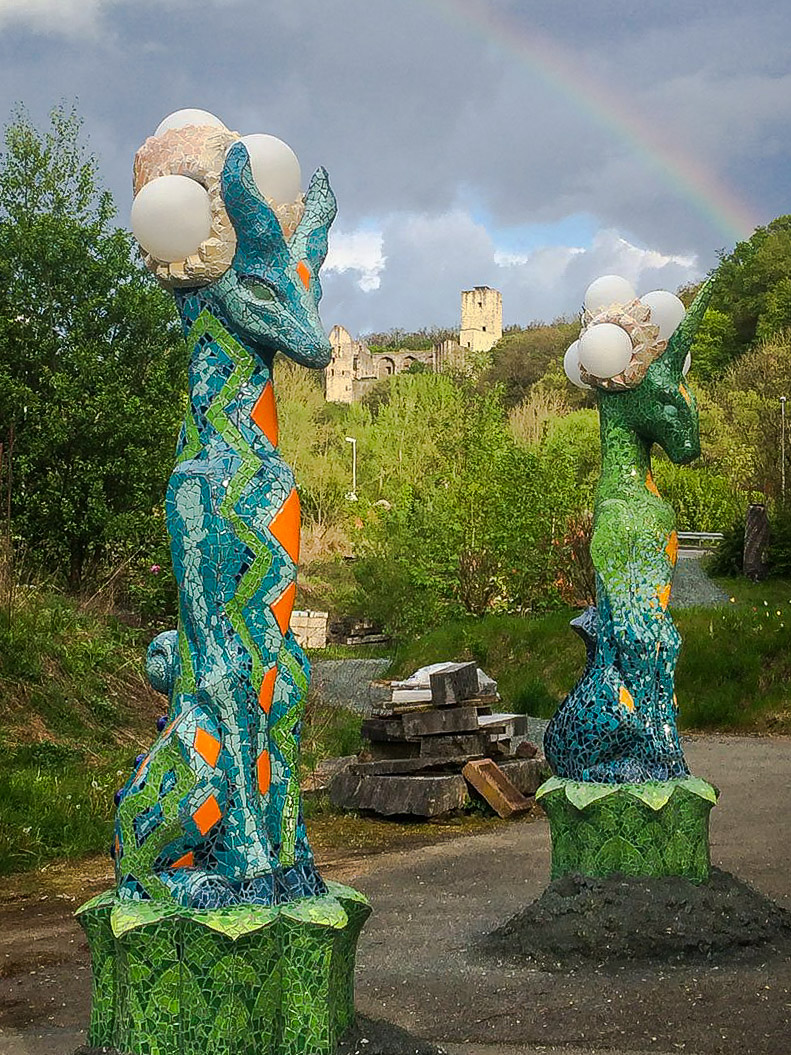 Mit bunten Steinen lassen sich Fassaden schmücken, Skulpturen gestalten, Kunstobjekte ausformen.