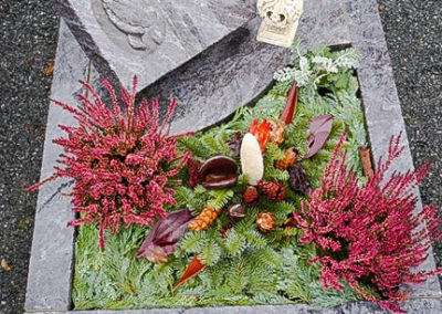 Die Beispielbilder auf dieser Website zeigen eine Auswahl von Grabsteinen, die ich in den letzten Jahren gestaltet habe. Sie geben einen Überblick über verschiedene Gestaltungsmöglichkeiten. Sie finden auch einige Ausstellungssteine auf unserem Platz, die Sie sich jederzeit anschauen können.